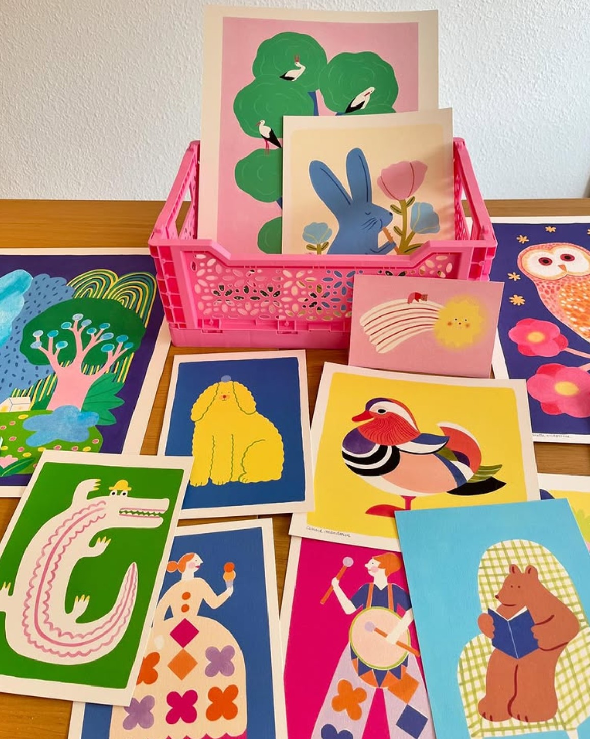 Margaux Grappe est graphiste-illustratrice depuis 2019. Elle travaille dans un atelier à Besançon pour des auteurs et des maisons d’éditions jeunesse. Elle réalise aussi des fresques murales et des illustrations. Son travail à la peinture acrylique doux et coloré nous emmène dans un univers rempli de plantes et d’animaux rigolos.